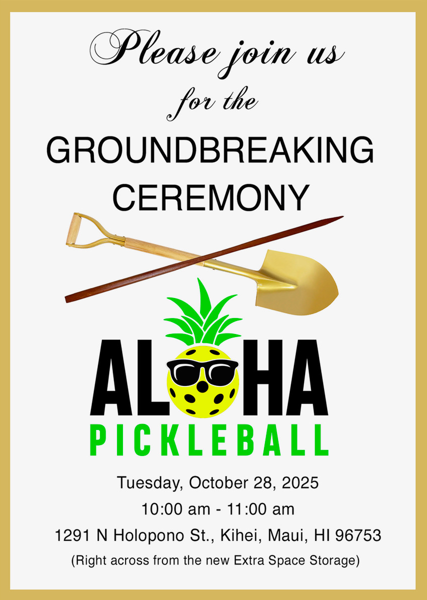December 13, 2021, Maui, Hawaii - Great News for Maui Pickleball – Aloha Pickleball, LLC announces they will be building a pickleball, health and fitness